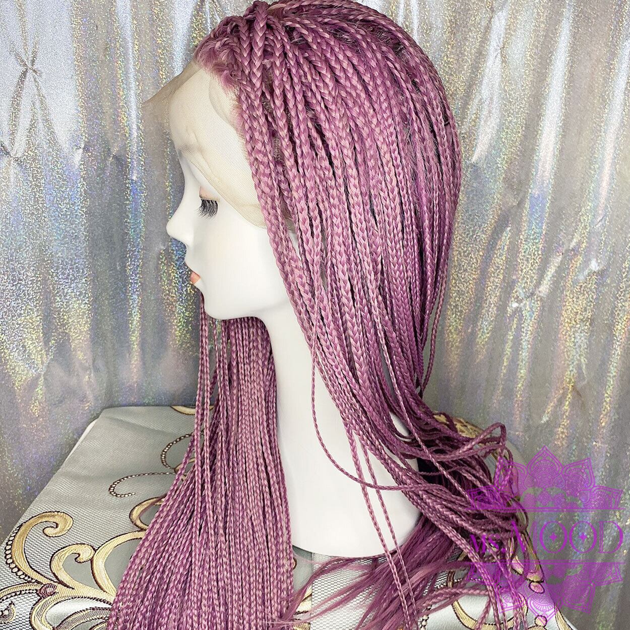 レースフロント くすみピンクパープル フルブレイズウィッグ