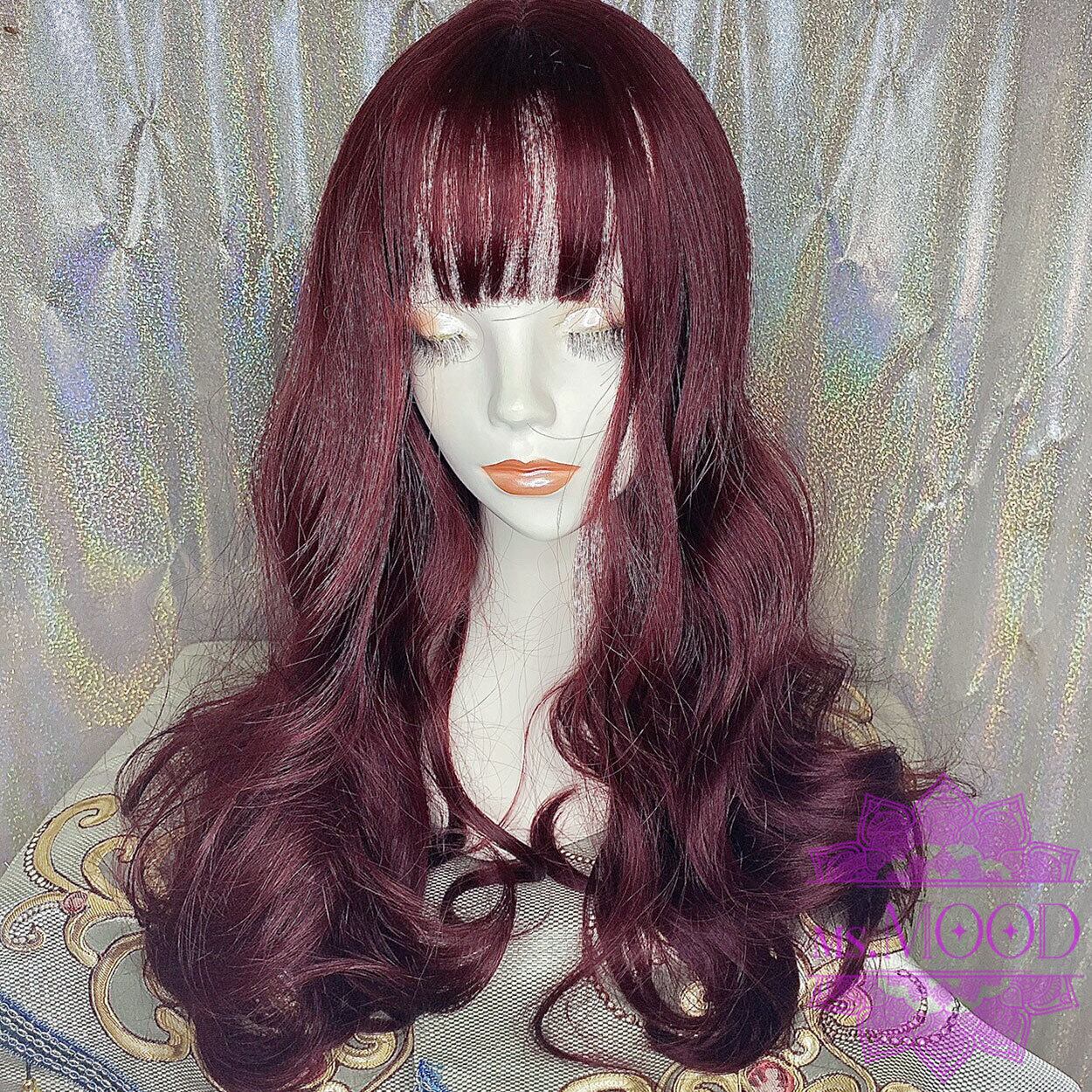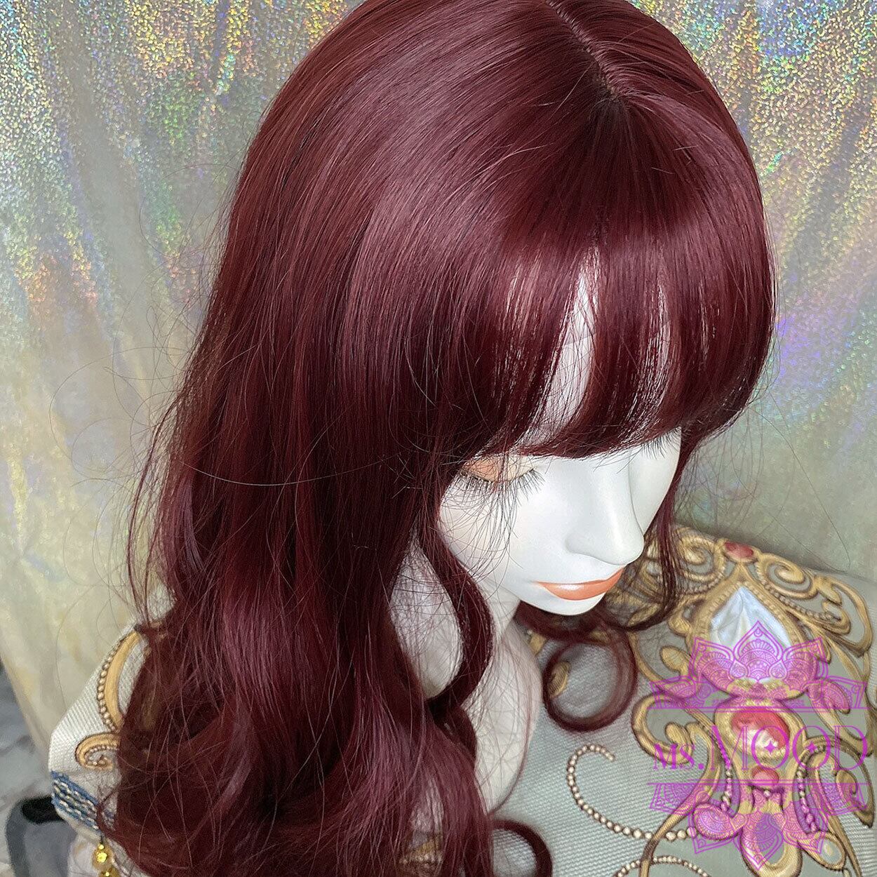 ダークレッド カーリーミディアムロングウィッグ