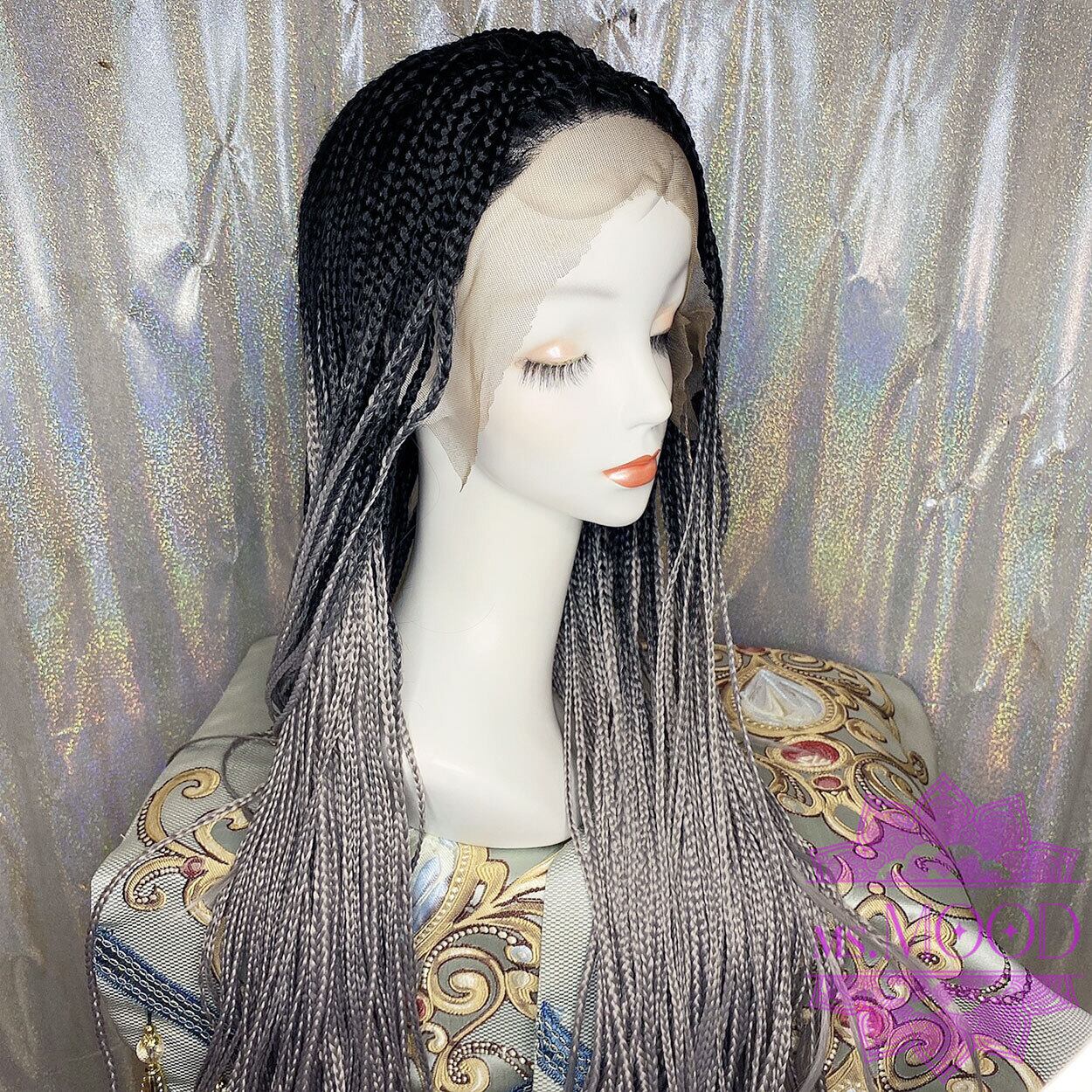 レースフロント グレーグラデーション フルブレイズウィッグ