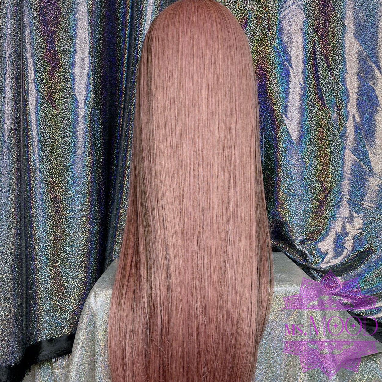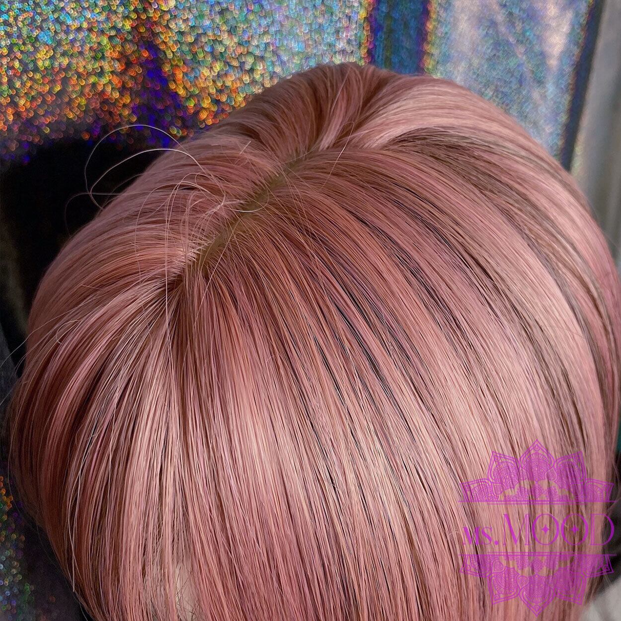 ピンクベージュ×ブラウンメッシュ ストレートロングウィッグ