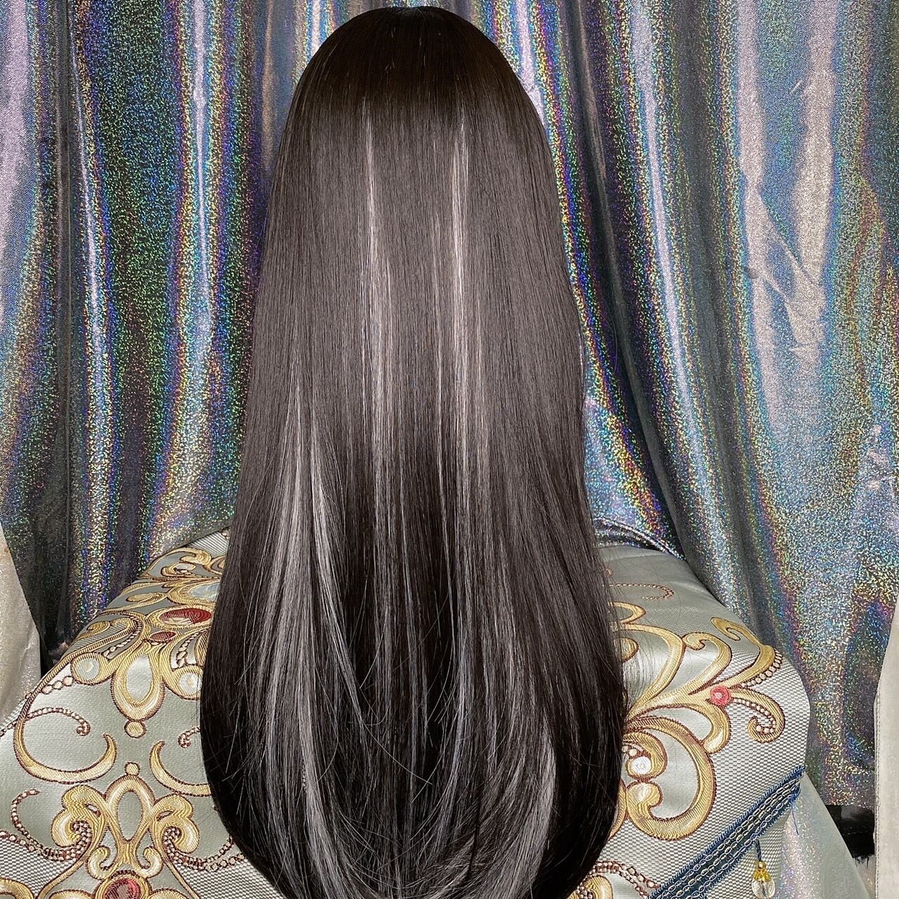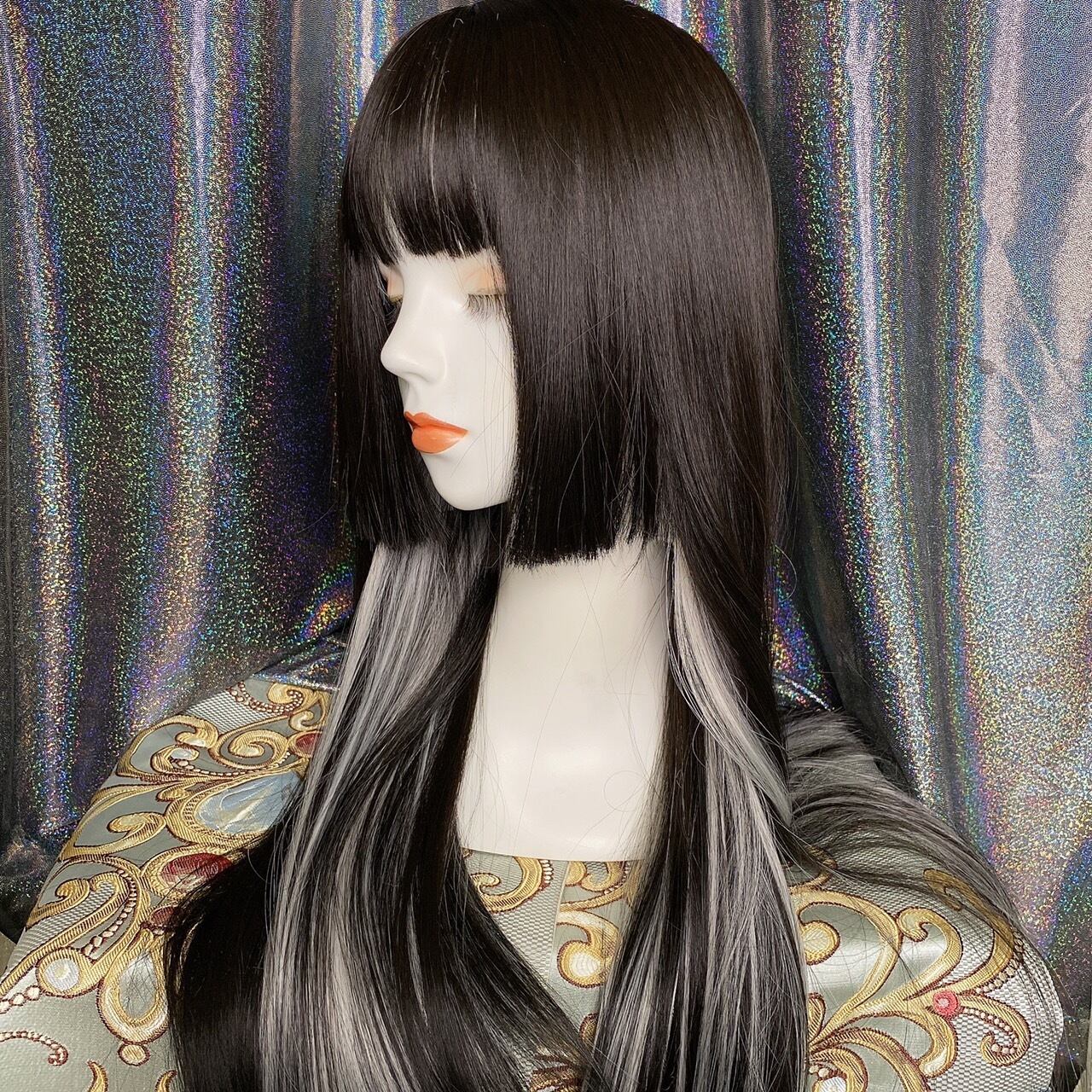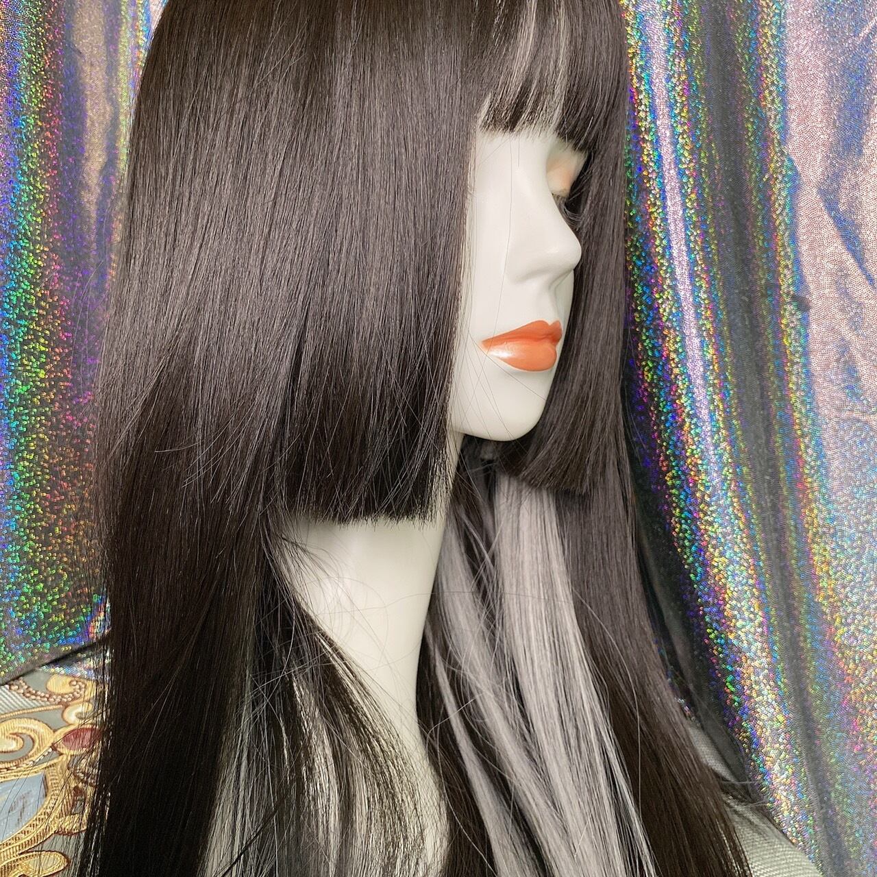 姫カット ブラック×インナーシルバー ロングウィッグ