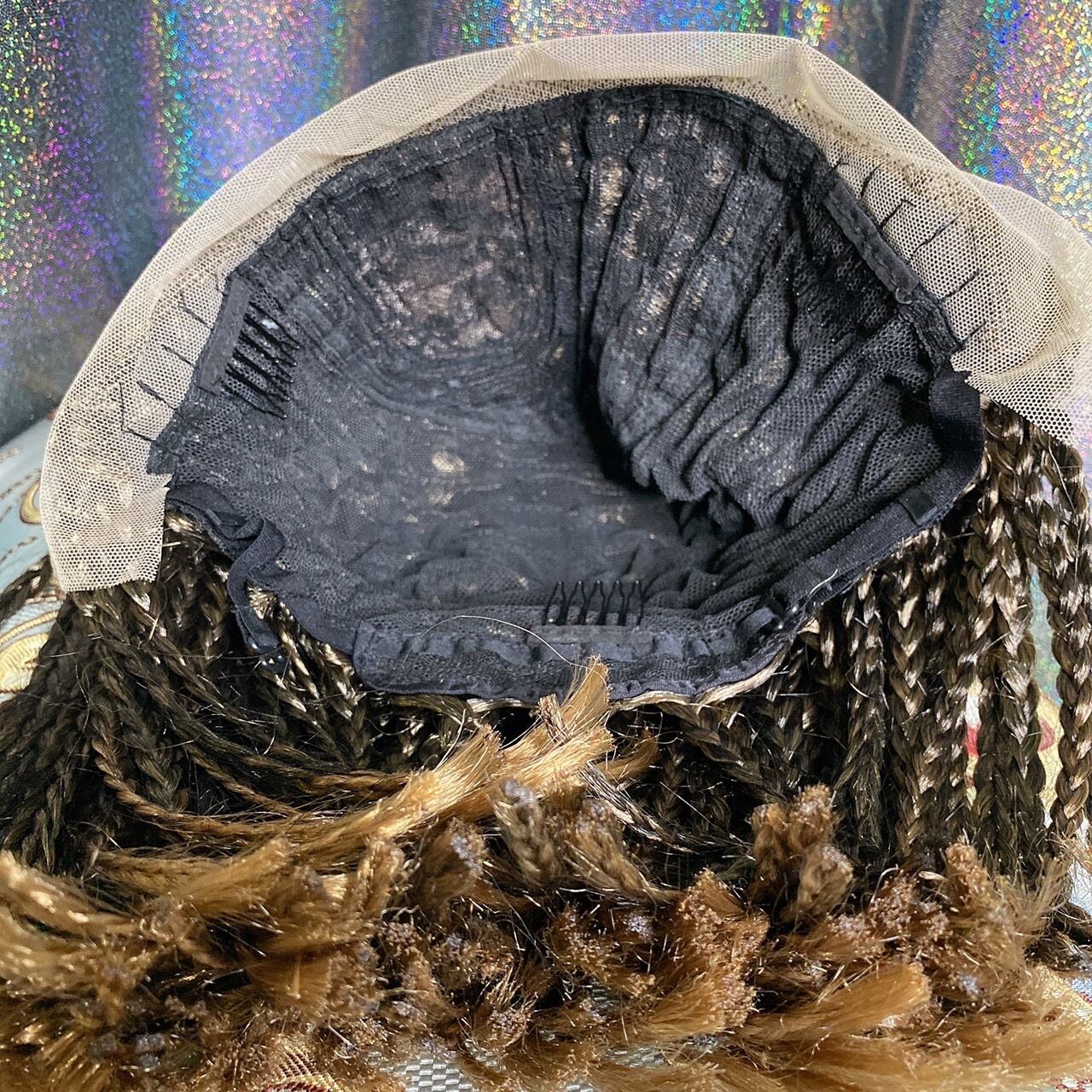 2.ウィッグのアジャスターをご自身の頭のサイズに調整し、すっぽりとかぶります。