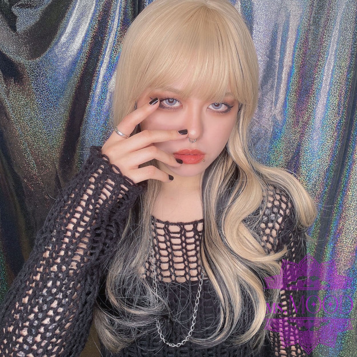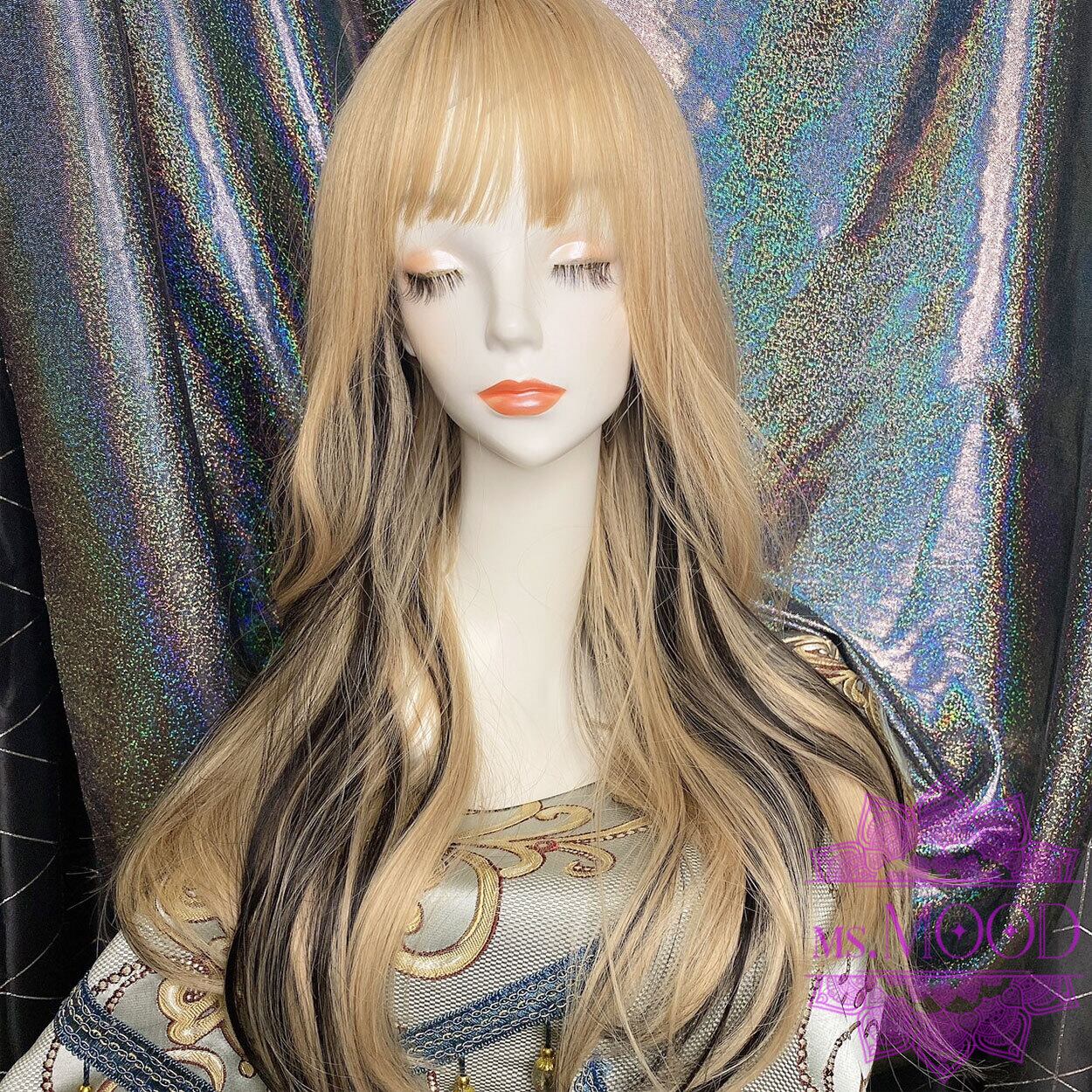 ブロンズ×インナーブラックメッシュ ウェーブロングウィッグ